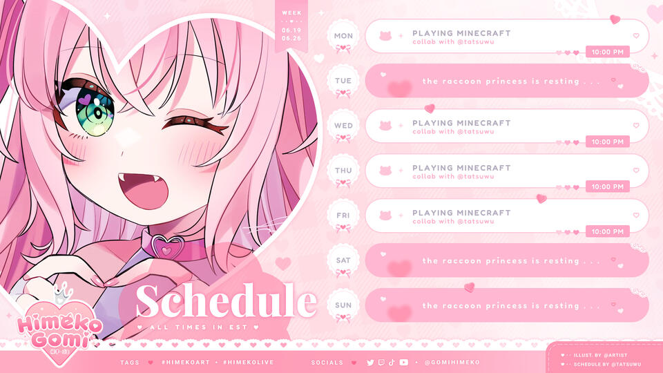 vtuber debut, special events, merch advertising, announcements, etc